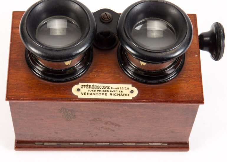 Pour comprendre l’originalité de l’entreprise d’Anaïs Zhang, il faut remonter à sa genèse et découvrir que les tableaux sont des sortes de palimpsestes : une œuvre en cache une autre. La Belle Epoque commence par la découverte dans le grenier de la maison familiale de plaques de verre de l’arrière-grand-père de son mari, Paul Verdun, médecin brillant qui s’était engoué pour l’art nouveau de la photographie. Il utilisait un Vérascope, appareil stéréoscopique dont la particularité est d’avoir deux chambres et deux objectifs dans le même boîtier. Il produit deux photographies « jumelles » (semblables mais non identiques) qui sont tirées sur de fines plaques de verre. Un autre appareil permet de visionner l’image en 3D.